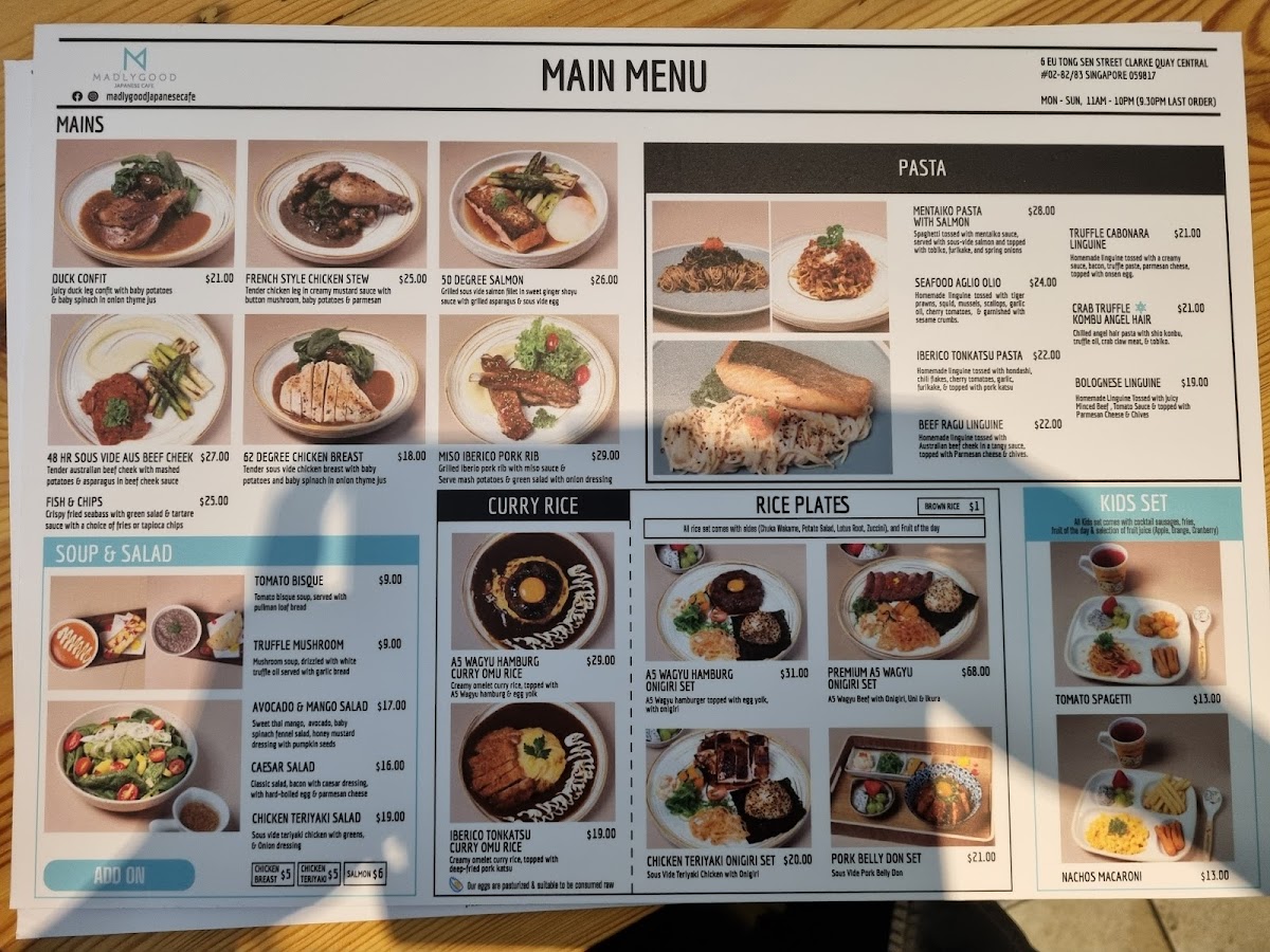 Welcome to Madlygood Japanese Cafe, a delectable haven located in the heart of Clarke Quay, Singapore. The cafe’s menu, designed to tantalize your taste buds, features an enticing blend of traditional Japanese flavors and modern twists.